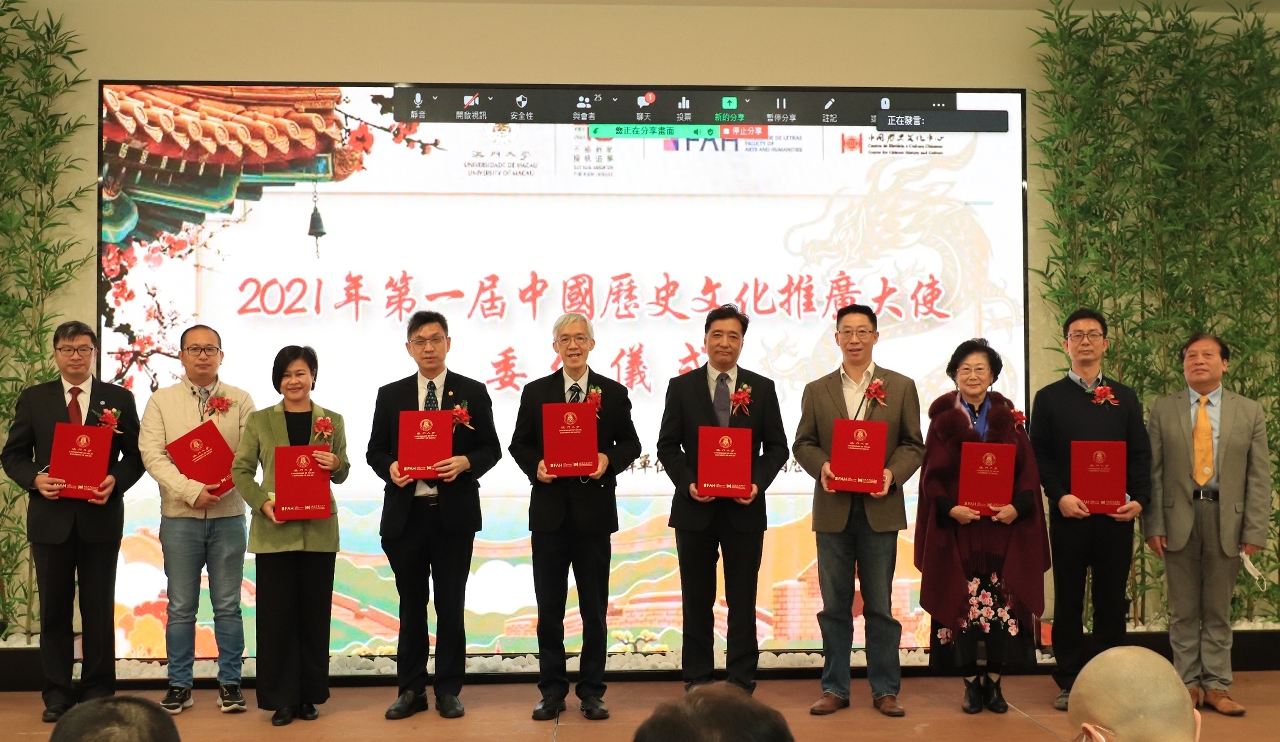 澳大学生事务长彭执中强调,推广大使应在广阔的实践中体验中华文化的真善美,善于发掘和实践中华文化的正能量,认真学习,修身养性,推己奉公,乐于奉献,增强使命感、责任感,研究并弘扬中国历史文化的优良传统。澳大中国历史文化中心邀请了社会贤达为顾问和督导,朱寿桐即场向吴在权、吴志良和施家伦颁发顾问聘书,向侯锡球、杨斌、林玉鳯、郑杰钊、彭执中、王庆节、李德凤、张九龄和杨兆贵颁发督导聘书。及后澳大历史文化中心副主任郑宁人介绍了大使团队。