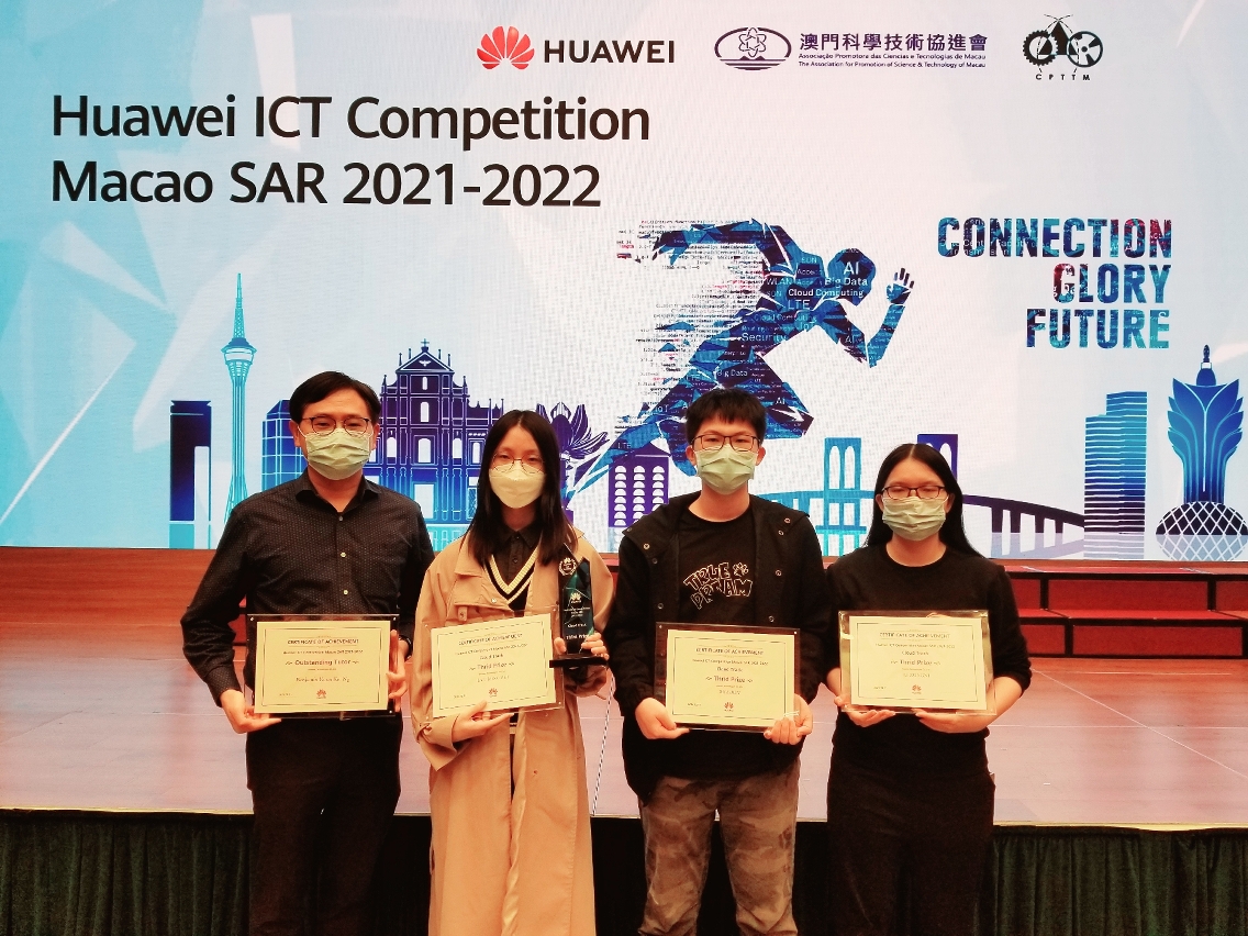 由华为澳门公司、科学技术协进会及生产力暨科技转移中心合办的“华为第六届全球ICT大赛——澳门站”于12月11日举行颁奖礼,澳门理工学院计算机应用技术博士学位课程温宇强、大数据与物联网硕士学位课程姚宇及电脑学学士学位课程张博亮所组成的学生队伍勇夺网络赛道一等奬,并代表澳门晋级亚太区域赛,将与亚太区的顶尖学生一较高下。同时,由计算机应用技术博士学位课程李宗妮、大数据与物联网硕士学位课程吕明媚及电脑学学士学位课程沙俊所组成的学生队伍在云赛道亦获得三等奬佳绩。