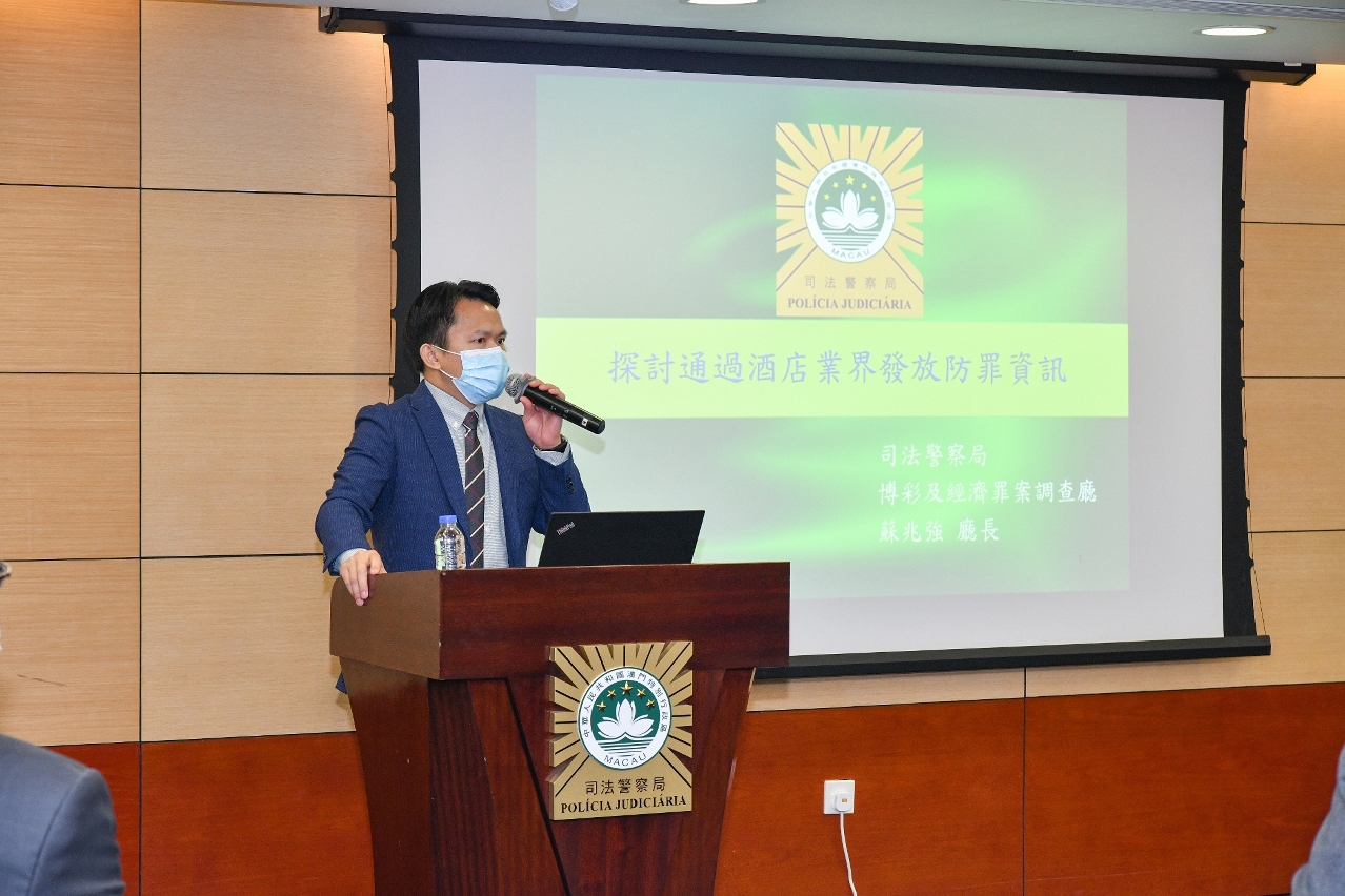 会上,司警局人员向与会代表介绍了现有治安通报机制的运作情况和成效,在2021年1月至11月期间,司警局透过上述通报机制快速接收到酒店业界通报的最新治安讯息,及时跟进调查,成功侦破凶杀、抢劫、操纵卖淫、使用伪证、逾期逗留及非法收留等案件,警民合作成效显着。司警局人员还讲解如何强化酒店保安和管理工作,防治卖淫、毒品、非法兑换货币活动而衍生的盗窃、抢劫等犯罪,以及当酒店场所发生刑事案件时,如何保护案发现场和配合警方侦查等防罪资讯,冀能增强业界对相关犯罪活动的警觉性和应对能力。
