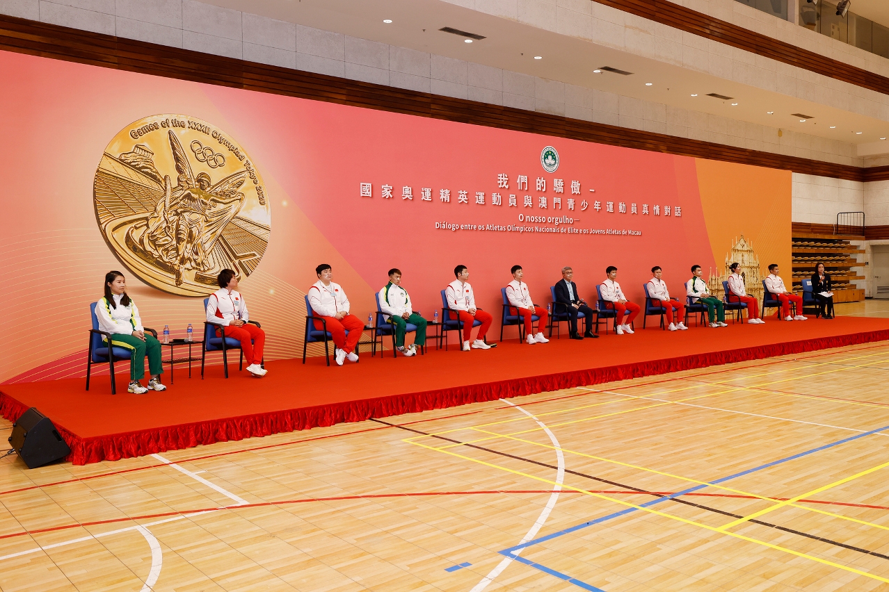 一行人上午10时出席了在奥林匹克体育中心室内体育馆举行的“我们的骄傲-国家奥运精英运动员与澳门青少年运动员真情对话”活动,向在场500名集训队青少年运动员和体育学校学员分享成长经历,道出训练及比赛的苦与乐,并与澳门运动员进行了乒乓球和羽毛球互动交流。其中,8名运动员包括马龙、许昕、谢思埸、吕小军、钟天使、孙一文、巩立姣及苏炳添,联同本澳运动员代表郭建恒、黄俊华、区海欣与学生真情对话,分享在奥运会夺奖、为国争光的喜悦。有学生关心在比赛遇到挫折时如何坚持,以及在面对重要赛事时如何调整心态,以发挥得更好。国家奥运精英运动员坦言,成功的秘诀是坚持不懈,永不放弃,因为热爱运动,就会有坚持的力量,并会不断钻研,力求做到最好,迎接挑战。他们又勉励青少年运动员在比赛中把握机会,摆好心态,自信地发挥,不留遗憾。