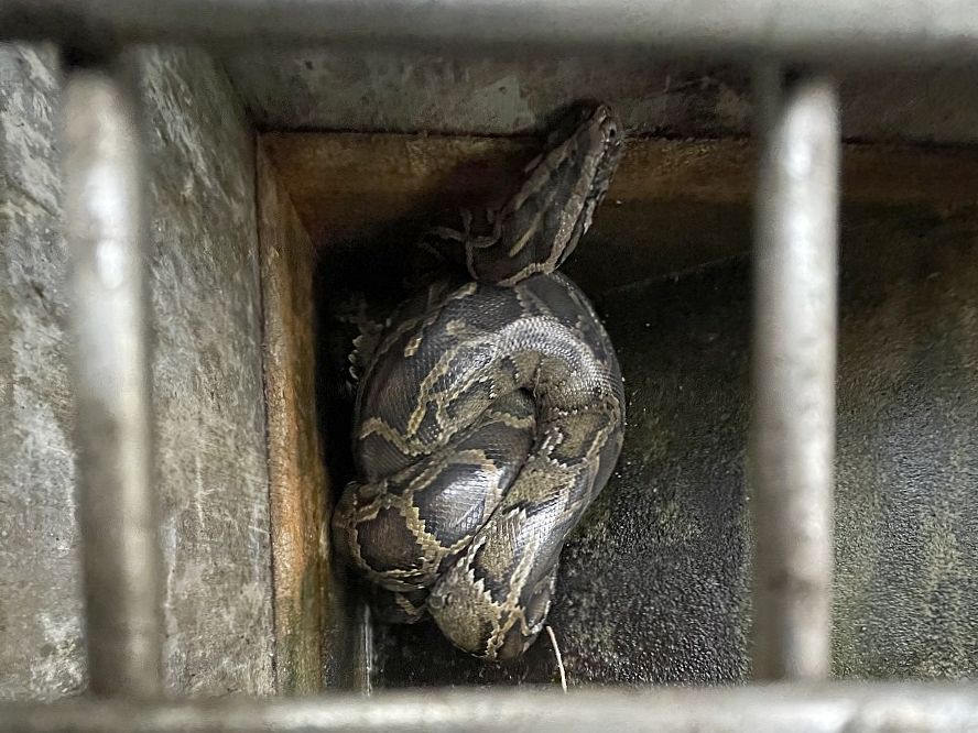 蟒蛇体长约三米健康状态良好,将由市政署管护饲养。