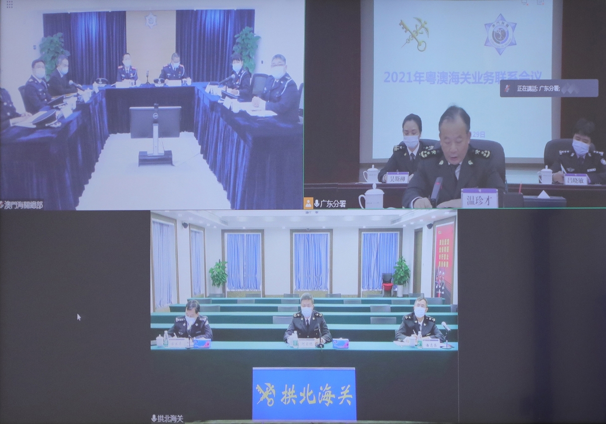 本月29日,澳门海关关长黄文忠率领海关代表一行七人,以视像形式与海关总署广东分署举行年度业务联系会议,双方就粤澳海关在「三智」合作、口岸疫情防控、通关业务合作,保护知识产权合作,以及在缉私合作上的工作内容进行了总结和评估,就进一步深化合作交换意见,共同推进粤港澳大湾区、横琴粤澳深度合作区的建设,推动澳门融入国家的发展大局。