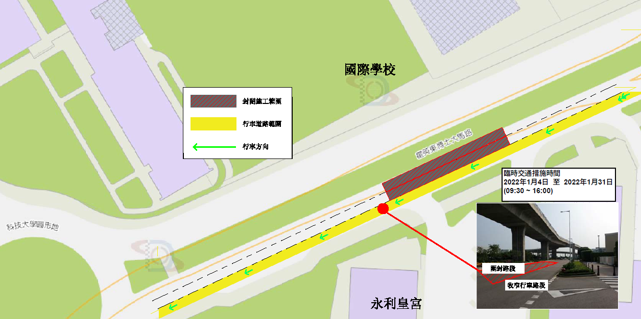 (1) 2022年1月4日至2022年1月31日,每日上午9时半至下午4时,霍英东博士大马路靠近永利皇宫侧改为单线行车。(详见图1)
