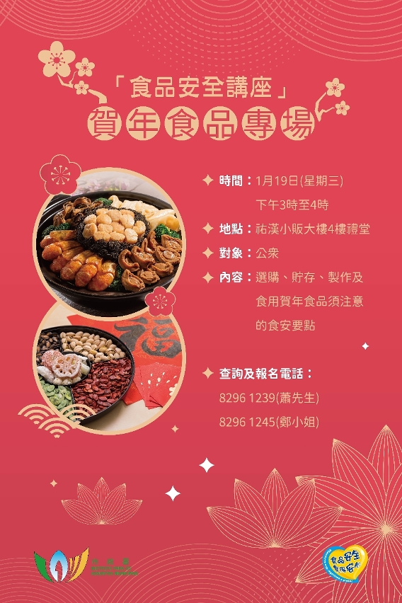 市政署持续举办各类食品安全培训,以提升市民及业界的食安风险防范意识。因应农历新年将至,市政署将于1月19日举办“食品安全讲座—贺年食品专场”,讲授选购、贮存、制作及食用贺年食品的注意事项,欢迎市民及团体报名参加。
