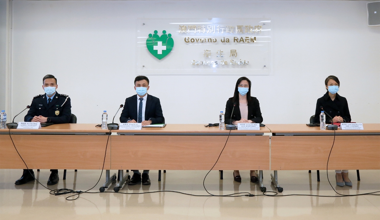 新型冠状病毒感染应变协调中心(下称应变协调中心)于今(20)日举行记者会,教育及青年发展局非高等教育厅黄嘉祺厅长、卫生局疾病预防及控制中心传染病防控处梁亦好处长、治安警察局行动及通讯处马超雄处长和旅游局公共关系处蓝同好处长介绍了本澳及邻近地区整体防疫情况。