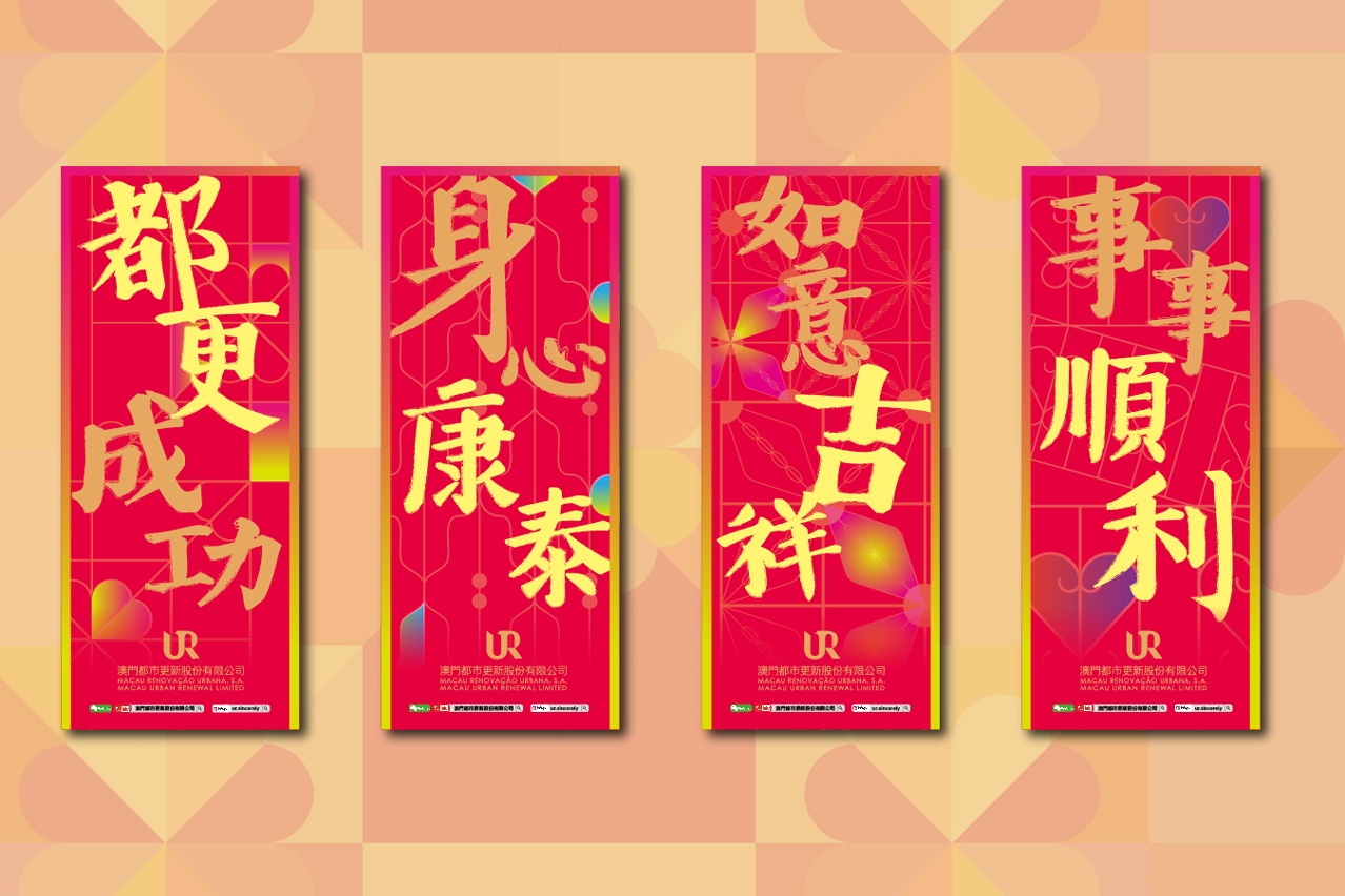 新春佳节将至,澳门都市更新股份有限公司(下称:都更公司)以首个更新项目「佑汉七栋楼群」的大厦名称为设计概念,制作一套八款「佑汉‧好意头」贺年挥春。市民只需关注都更公司Instagram(名称:ur.sincerely)或微信公众号(名称:澳门都市更新股份有限公司),即可于指定时段内,到都更公司或快闪街站免费索取贺年挥春一套。