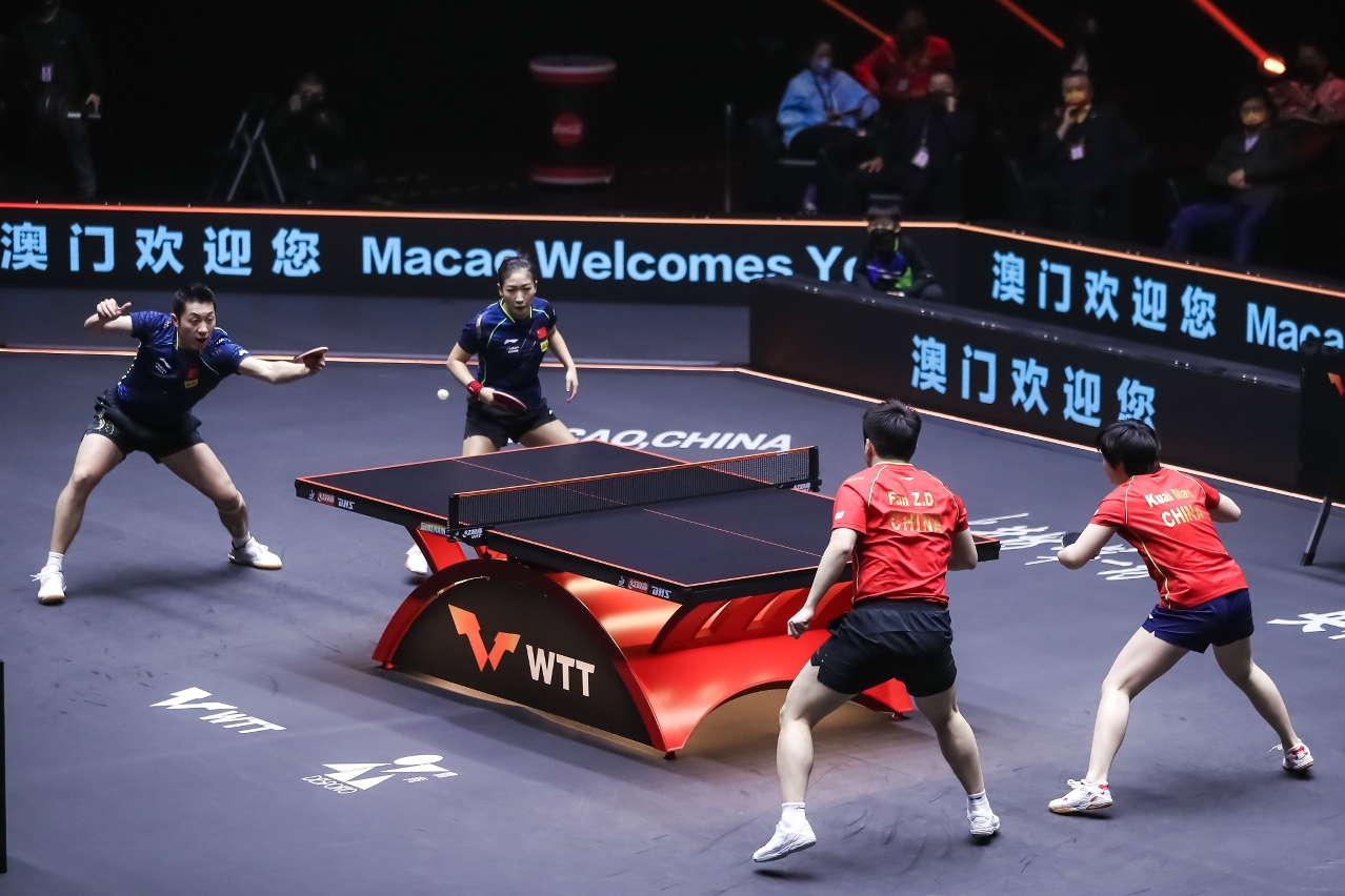由体育局及WTT世界乒乓球职业大联盟主办、澳门乒乓总会协办的「WTT 澳门冠军赛 2021中国之星 ─ 由银河娱乐集团呈献」今日(22日)进行第四日赛事,混双锦标由许昕/刘诗雯组合击败樊振东/蒯曼夺得;另外,男单产生四强,晋级球手包括林高远、徐瑛彬、王楚钦及许昕。赛事明日(23日)将上演压轴日赛事,进行男子、女子单打的准决赛和决赛,球迷万勿错过。