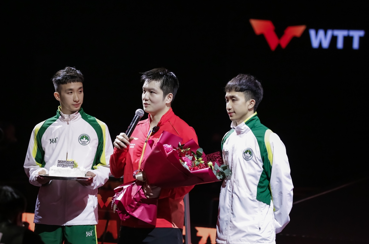 赛后随即进行颁奖,颁奖嘉宾包括国际乒联执行副主席、WTT世界乒联理事会主席及中国乒乓球协会主席刘国梁,澳门特别行政区政府体育局局长潘永权,银河娱乐集团董事程裕升,中国乒乓球协会理事、李宁中国体育用品有限公司董事长特别助理、品牌管理中心总经理张向都,正大集团农牧食品企业中国区副董事长叶剑,中国乒乓球协会理事、上海红双喜股份有限公司总经理楼世和,澳门特别行政区政府体育局副局长刘楚远及林莲娇。