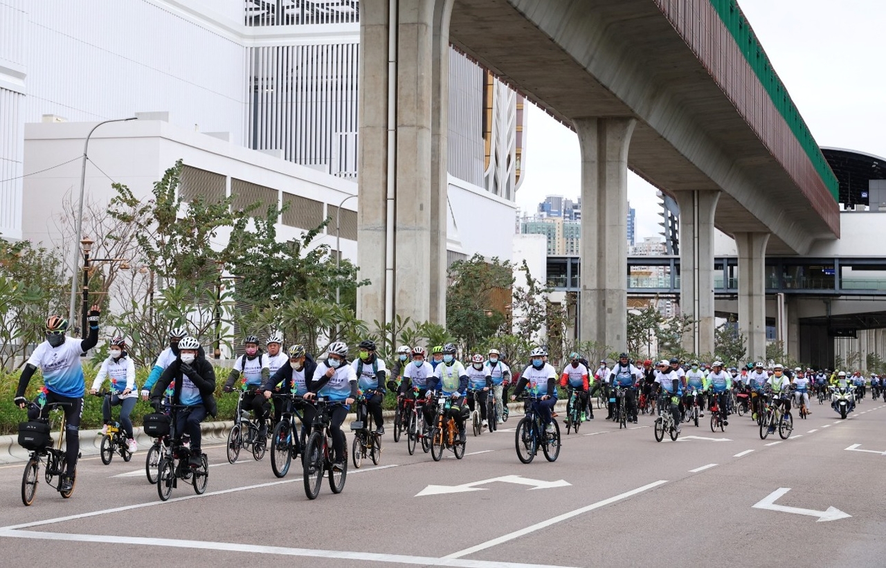 “迎冬奥 新春单车行大运”由体育局与中国澳门单车总会共同主办,于2月3日 (周四)上午举行,活动吸引约250名市民参与,场面热闹。上午9时许,参加者穿着整齐划一的冬季奥运会纪念T恤,浩浩荡荡于奥林匹克体育中心三人篮球场侧空地出发,车队途经氹仔区和路环一带,最后于终点站氹仔海滨休憩区结束全程约18公里的旅程。