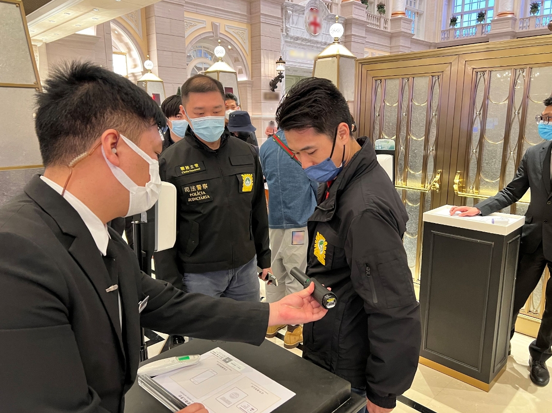 2月1日至3日期间,司警局联同博彩监察协调局派员先后巡查本澳多间娱乐场及私营贵宾厅,抽检场内人士的健康码,检查娱乐场出入口的红外线探热器和金属探测装置运作状况,并敦促娱乐场安保职员严格要求进场人士遵守防疫指引及落实各项防疫规定。
