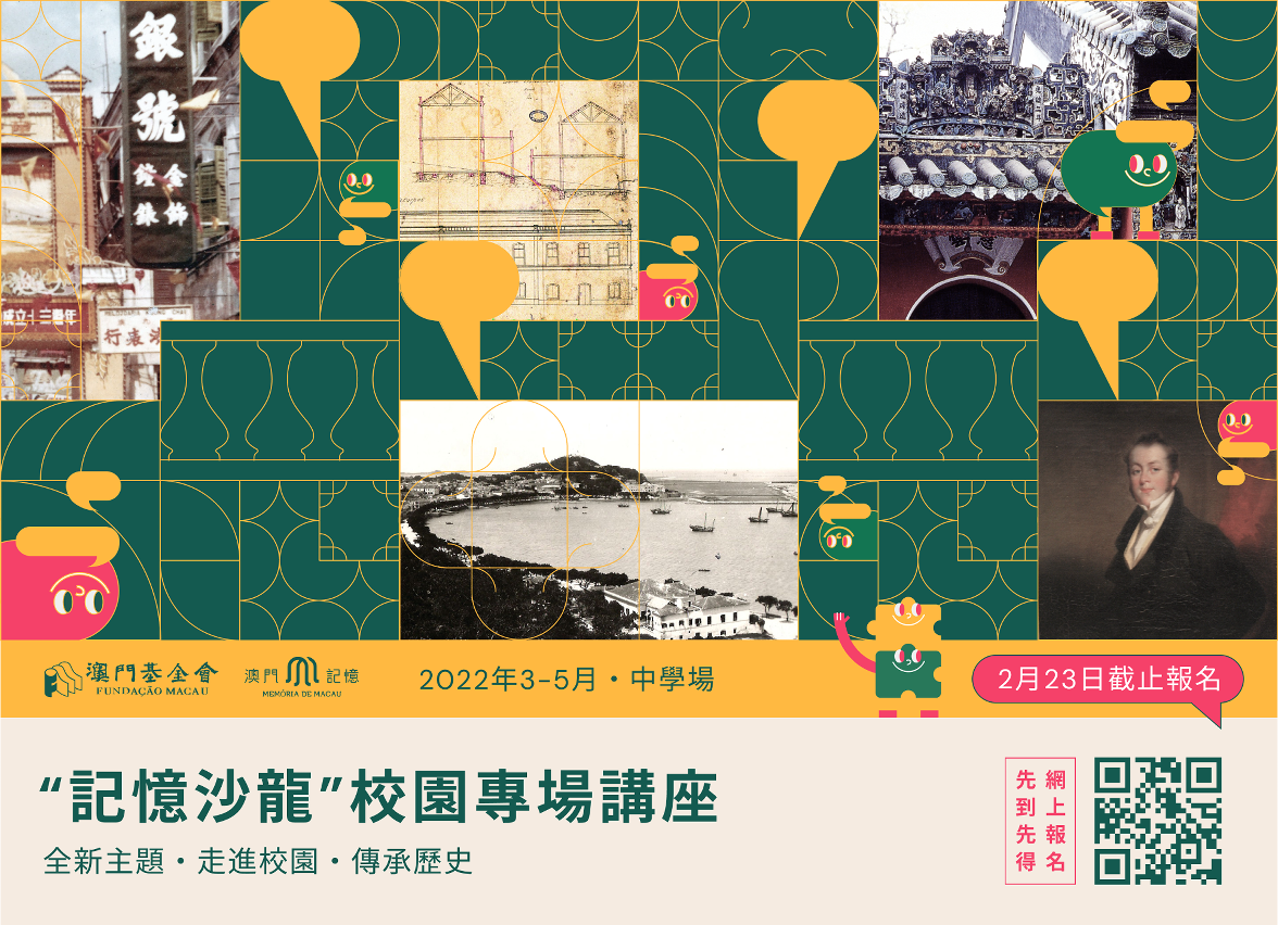 澳门记忆于2020年11月开始邀请澳门文史工作者走进校园,以中学生为对象举办系列主题讲座,活动推出至今,持续吸引学校咨询活动详情,广受各校师生的关注及欢迎,反应热烈。有关校园专场(中学场)2月23日截止报名,有意参与之学校可透过报名连结 ( https://bit.ly/3IAXiuC ) 了解每场讲座的简介;如有查询,可于办公时间内致电8797 8500或电邮至macaumemory@fm.org.mo。如欲掌握更多“澳门记忆”的最新动态,除可浏览网站外,还可关注“澳门记忆”的Facebook专页、微信订阅号及Instagram (ID:MacauMemoryFM),亦可添加微信个人号为好友(ID:MacauMemoryExpress)。