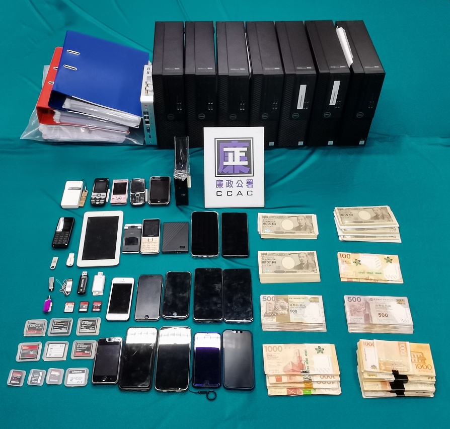 廉署日前对涉案副警长及赌厅人士采取调查行动,于该副警长家中搜获大量现金、多部通讯设备及文件,并于涉案场所搜获与案件相关的手提电话、文件及电脑等。