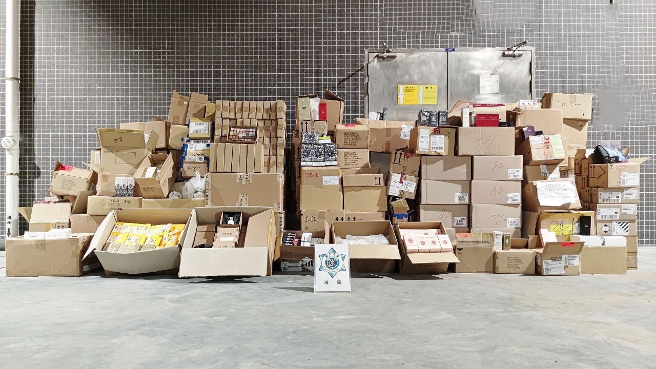 为有效遏止水客活动,守护好本澳的防疫前线,海关派员连日监察怀疑与水客活动有关的店铺,经汇总及分析相关情报后,锁定一个位于北区工厦的散货点,于10日下午采取行动,在现场缉获大批美妆产品共8,000件,估值约415万澳门元。经调查后,有强烈迹象显示该场所负责人涉嫌非法聘用人员,将上述货物以「蚂蚁搬家」形式分批运送出境,规避粤澳两地海关的监管。为减低新冠病毒的传播风险,海关执行防疫指引,已对涉案货物进行全面消毒程序。