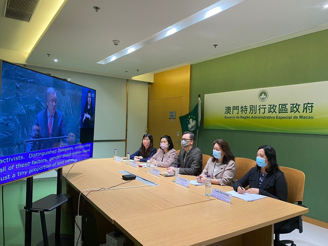 此外,联合国妇女地位委员会于本月14日至25日在美国纽约总部举行第66届年度会议,因应疫情关系,会议以线上线下形式同步进行。澳门特别行政区政府社会工作局邓玉华副局长、家庭及社区服务厅李丽萍厅长、社区协作处林佩嫦处长,以及澳门妇女联合总会周惠仪副理事长和梁美玲副理事长随中国代表团,以线上形式参与首日(14日)会议。会议的主题为“在气候变化、减少环境和灾害风险的政策和计划的背景下,实现性别平等和增强所有妇女和女童的权能”。会议关注新冠肺炎疫情后的恢复工作,如何有效促进性别平等和可持续的未来,气候变化、减少环境和灾害风险的政策和方案,各国及地区政府推进性别平等的行动,实现妇女充分、平等和切实的参与及决策等。