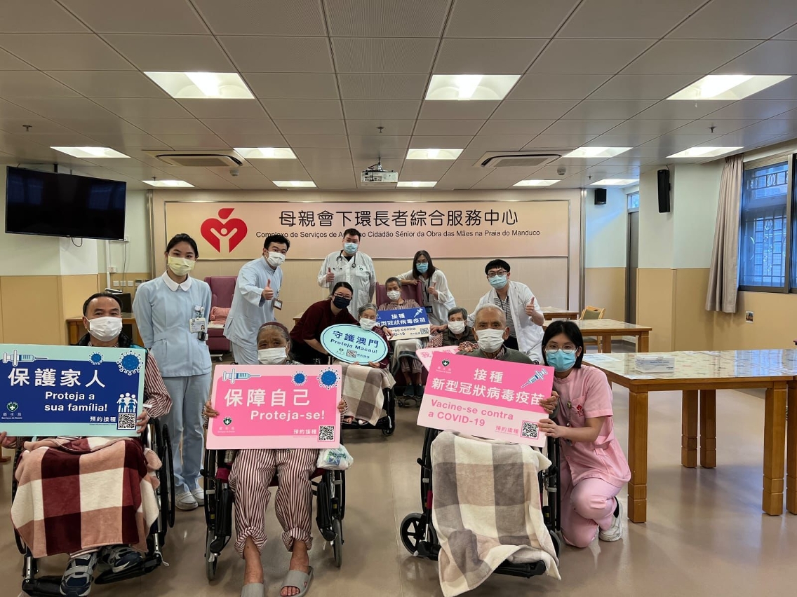 卫生局及镜湖医院的外展医护人员,联同社会工作局的社工人员,前往全澳24间长者院舍,为住院长者讲解接种新冠病毒疫苗的正确讯息。长者经评估身体状况适合而其本人又愿意接种并签署知情同意书下,医护人员会即场为其接种新冠病毒疫苗。倘长者缺乏意识能力,医护人员在征得其家属或监护人同意后,会为长者接种新冠病毒疫苗。