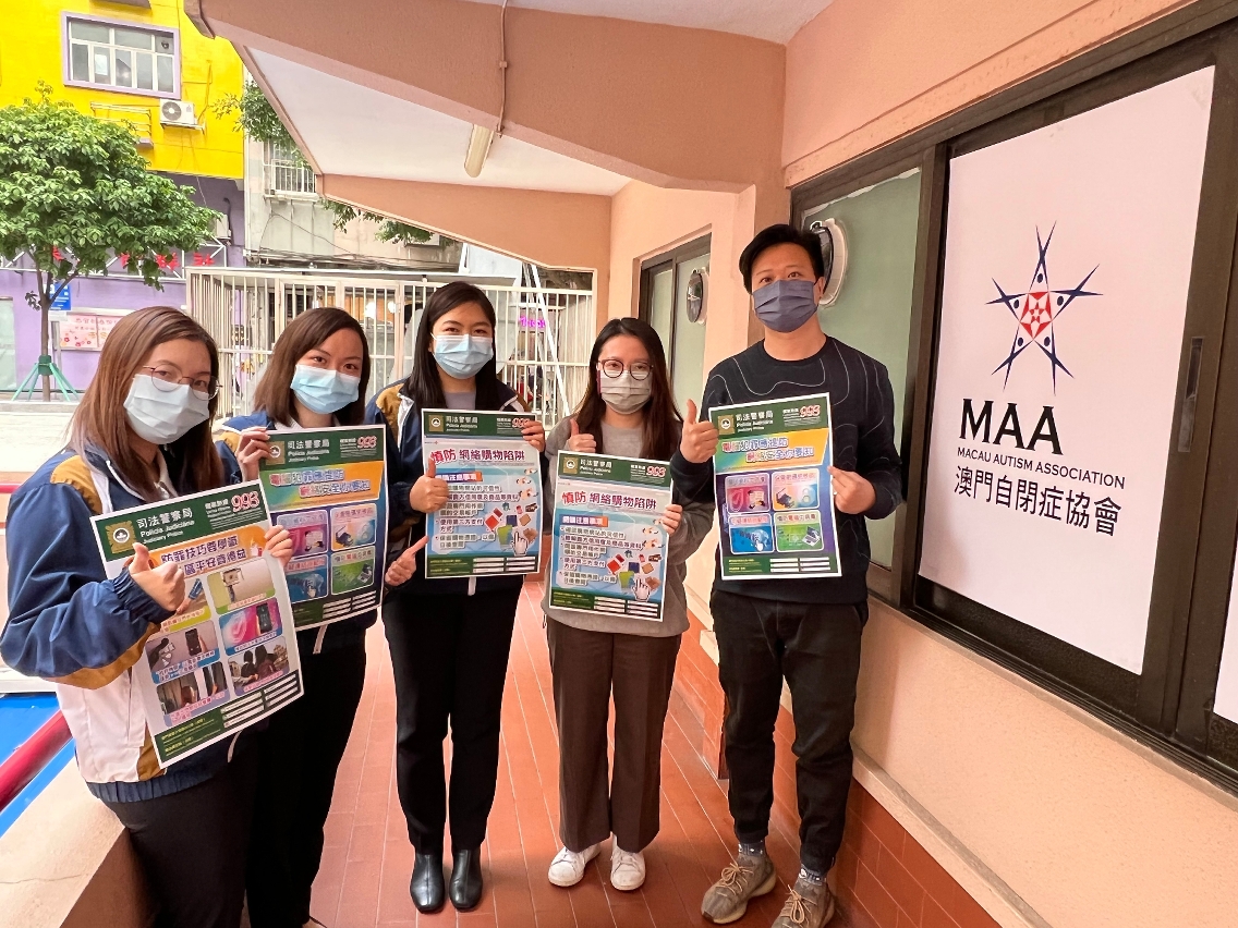 3月1至15日,司法警察局社区警务及公共关系处处长赵朱惠敏带领辖下社区警务组,分别与澳门明爱总干事潘志明、澳门展智服务协会主席姚继光、澳门特殊奥运会执行总监萧宇康、澳门弱智人士家长协进会理事长黄锦芳、澳门利民会总干事苏景杨、澳门聋人协会理事长黄鉴旋、澳门伤残人士服务协进会秘书长何国明、澳门听障人士协进会总干事杨学渊、澳门视障人士权益促进会会长赵汝旭、澳门自闭症协会行政总监许启申、澳门唐心儿协会理事长刘笑欢、澳门智耆之友协进会会长刘玫瑰以及各康复服务团体代表座谈交流。