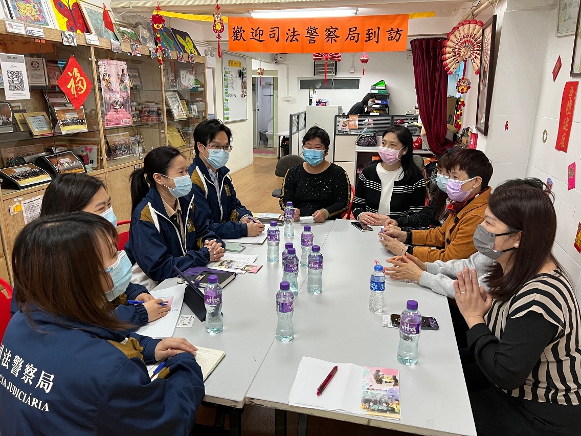 为了促进警民互信互助,推动警务和防罪资讯全面渗透社区,司法警察局派员先后拜访本澳多个康复服务团体,就司警局的执法情况、警务宣传,以及为复康人士提供合适的防罪教育和辅助措施等方面交流意见。