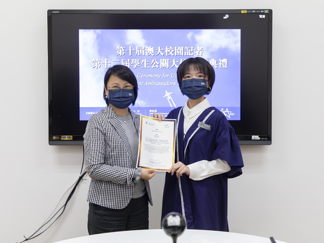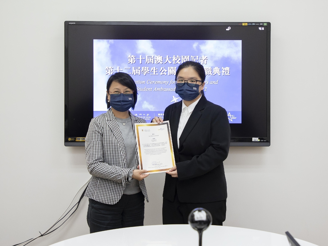 澳门大学新一届校园记者和学生公关大使举行线上就职典礼,期间并颁发“十大杰出校园记者”及“十大杰出学生公关大使”奖状。澳大副校长莫启明勉励学生把握大学提供的实践机会,拓展潜能。