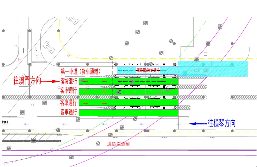 澳门轻轨延伸横琴线项目有关盾构施工前首两个阶段的地质加固已于2022年3月29日完成,比原计划提前了17天。第三阶段施工将由2022年4月1日至2022年4月25日进行,配合施工需要,现有货车查验车道将进行迁改及封闭,届时由横琴口岸往澳门方向的车辆会使用4条通道,其中1条具备查验货车的功能,受施工环境的限制,预计横琴口岸车辆查验时间亦会有所延长,当局建议驾驶者此段期间尽量利用其他口岸通关或错峰出行,因行车条件将较为复杂,驾车人士若选用横琴口岸车道通关应提早出门,并遵守现场交通警员的指挥及安排。
