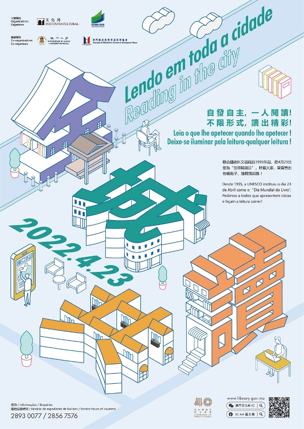 由文化局、教育及青年发展局、澳门大学图书馆、澳门图书馆暨资讯管理协会联合主办的2022年“澳门图书馆周”,将于4月23日上午10时30分在旧法院大楼举行启动仪式,并随即进行“4‧23全城共读”暨粤澳“共读半小时”阅读活动。此外,“澳门图书馆周”推广日将于4月30日(星期六)及5月1日(星期日)举行,现场设有“好书交换”、“期刊热卖"、摊位游戏及书展等多个精彩活动,免费入场,欢迎有兴趣的市民到场参与。