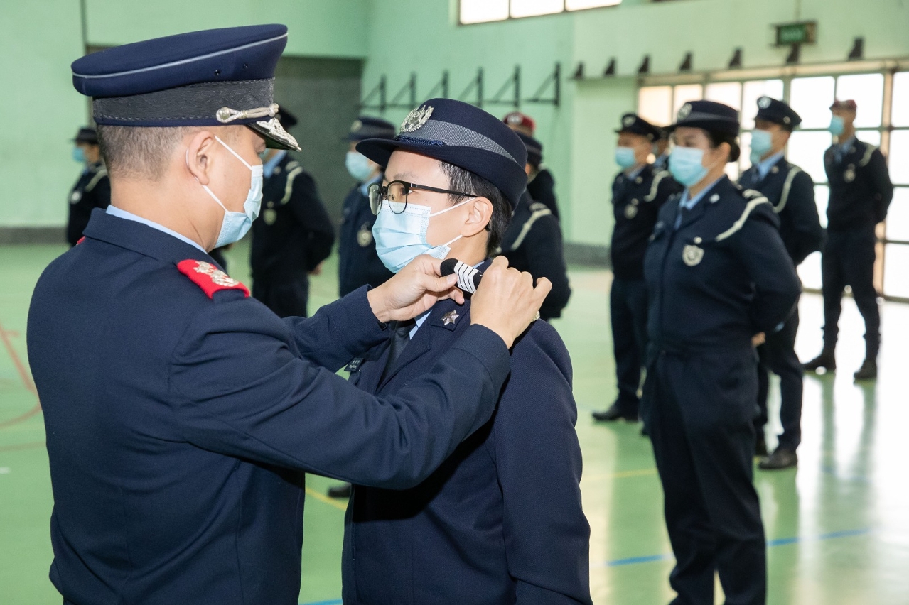 吴锦华局长祝贺晋升人员,同时勉励他们坚守初心,牢记使命,迎难而上,尽心尽力服务市民;并贯彻“廉洁高效,专业精干”的理念,继续优化现有服务和拓展新领域,配合国家和特区的持续发展,与全澳市民齐心同行、开创未来。期望本局人员继续勇往直前,无畏无惧地为澳门的长期繁荣稳定保驾护航。