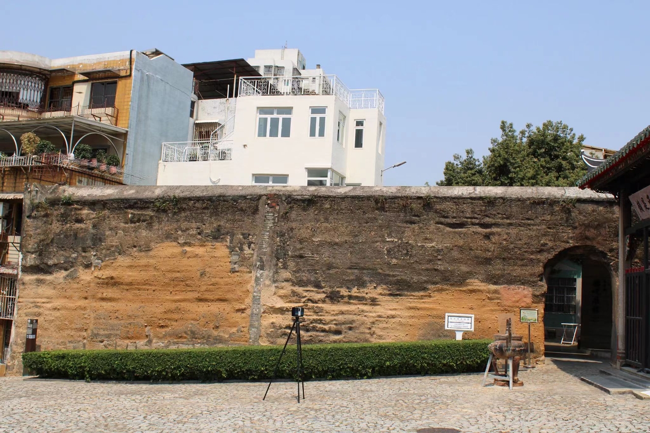 今年,文化局委托澳门科技大学文物修复实验室为城墙遗迹(圣方济各斜巷一段)及大三巴牌坊后侧两处夯土墙遗迹,进行详细环境勘查、状况记录、检测分析及制订修复方案,并已于四月初完成对相关夯土墙的红外线成像检测及激光扫描,全面记录夯土墙现况数据,研判夯土墙的保护状况,及早发现病害隐患,并将利用科学技术手段对夯土墙的原材料进行检查分析,稍后将因应进一步的检测结果,制订具针对性的保养方案及开展后续维护工作。