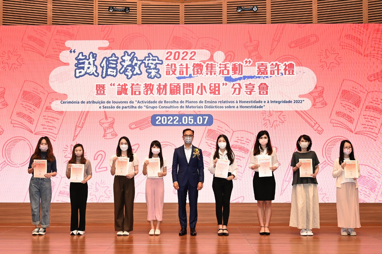 廉政公署日前(5月7日)假澳门科学馆会议中心举行诚信教案设计征集活动2022嘉许礼暨诚信教材顾问小组分享会。廉政专员陈子劲表示,廉署会持续优化廉洁诚信教育,与各界携手维护社会廉洁,培养品格健全的新一代。
