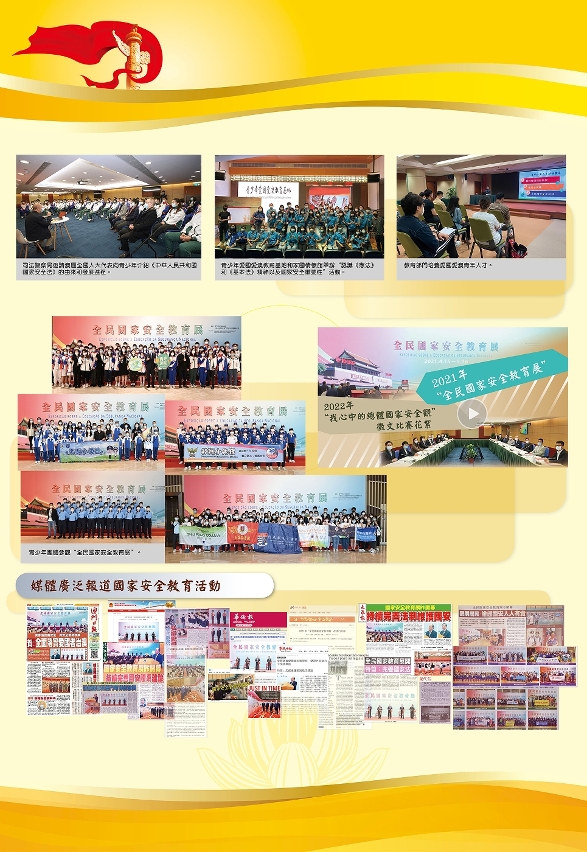 特区政府各部门联同社会团体,广泛开展国家安全宣传教育,其中最具规模、于2021年4月举办的“全民国家安全教育展”,累计42,000多人次到场参观,专题网站浏览次数超过33万次,活动得到媒体广泛报道,取得了良好的社会宣传效果。