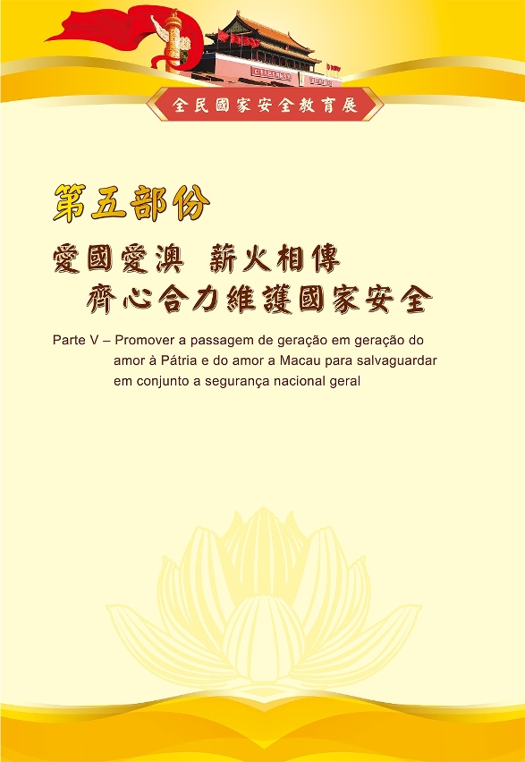展览的第五部分,以“爱国爱澳 薪火相传 齐心合力维护国家安全”为主题,展示了社会各界和广大市民,共同推动和支持维护国家安全的宣传教育工作。