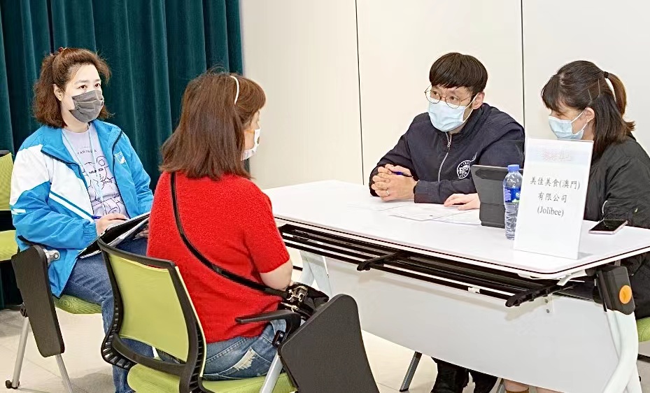 5月份起,劳工局与澳门工会联合总会(工联),在就业转介和辅导工作上进一步加大合作。在行业专场配对会上,由每月3场增至每周2场,务求尽快协助有求职需求的澳门居民尽快就业。