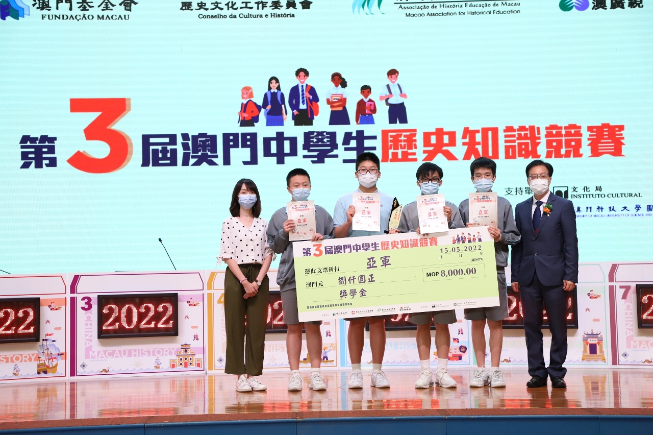由澳门基金会及其历史文化工作委员会、澳门历史教育学会及澳门广播电视股份有限公司联合主办,文化局及澳门科技大学图书馆支持之“第三届澳门中学生历史知识竞赛”准决赛及决赛已于2022年5月15日(星期日)假濠江中学附属英才学校顺利举行,本届赛事共吸引了本澳33所学校、共151支队伍报名参加,反应相当踊跃。