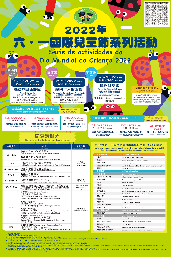 为了庆祝6月1日国际儿童节,多个政府部门、公共事业机构及民间团体共同举办2022年“六.一国际儿童节”系列活动,主题为“儿童权利公约"中的参与权,藉以唤起社会关注儿童权利和福祉,同时让市民一同感受节日气氛,欢度儿童节。