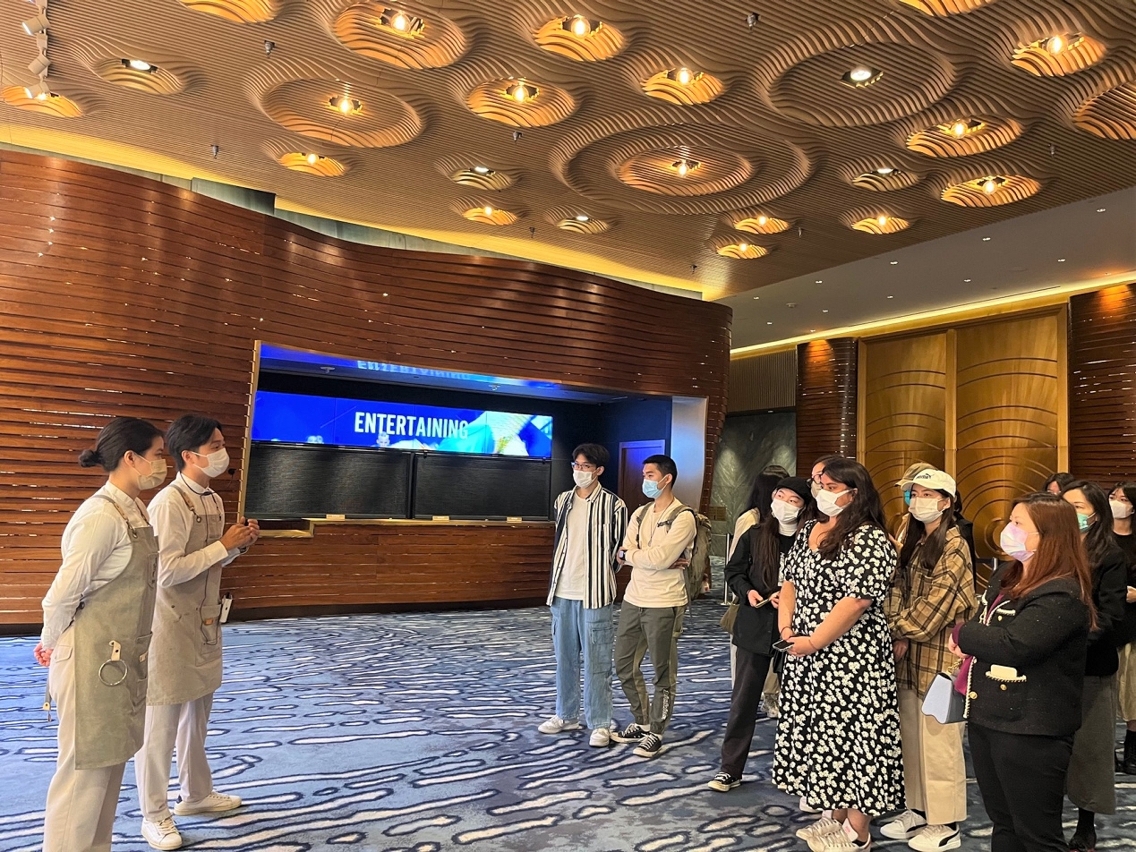 澳门理工大学艺术及设计学院代院长黎明海与师生一行八十多人在美高梅人力资源执行副总裁余婉莹等陪同下,首先前往美高梅剧院,观看《图说镜海——镜海归帆图》专题故事片。该专题片策划人兼澳门艺术家陆曦应邀出席活动,阐述其创作理念和创作手法,通过在九百平方米的特大超高清LED显示屏上展示百米卷画,诉说澳门的数百年历史,艺术场面震撼。该专题片以独特的表现方式,对澳门历史文化发展进行高度全面的描绘,无论在艺术表现力还是对历史文化的解读上,均有着重要的艺术及社会价值,寓历史教育于文化艺术欣赏之中,成为本澳文旅发展的新突破,并推动爱国爱澳教育工作,加深学生对澳门的了解和认识,增强家国情怀。