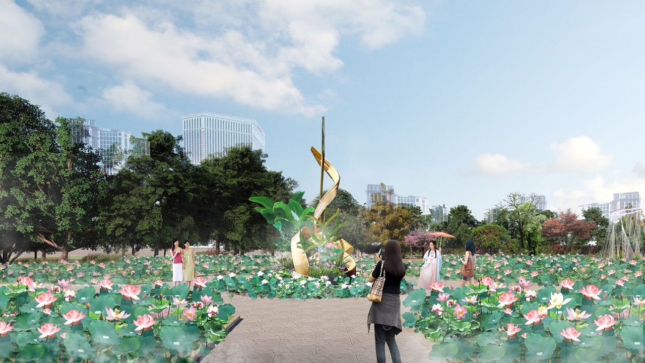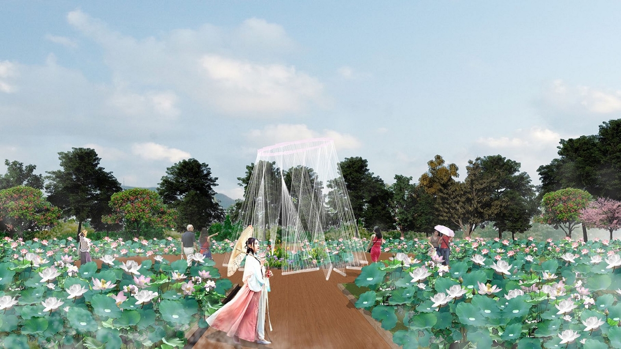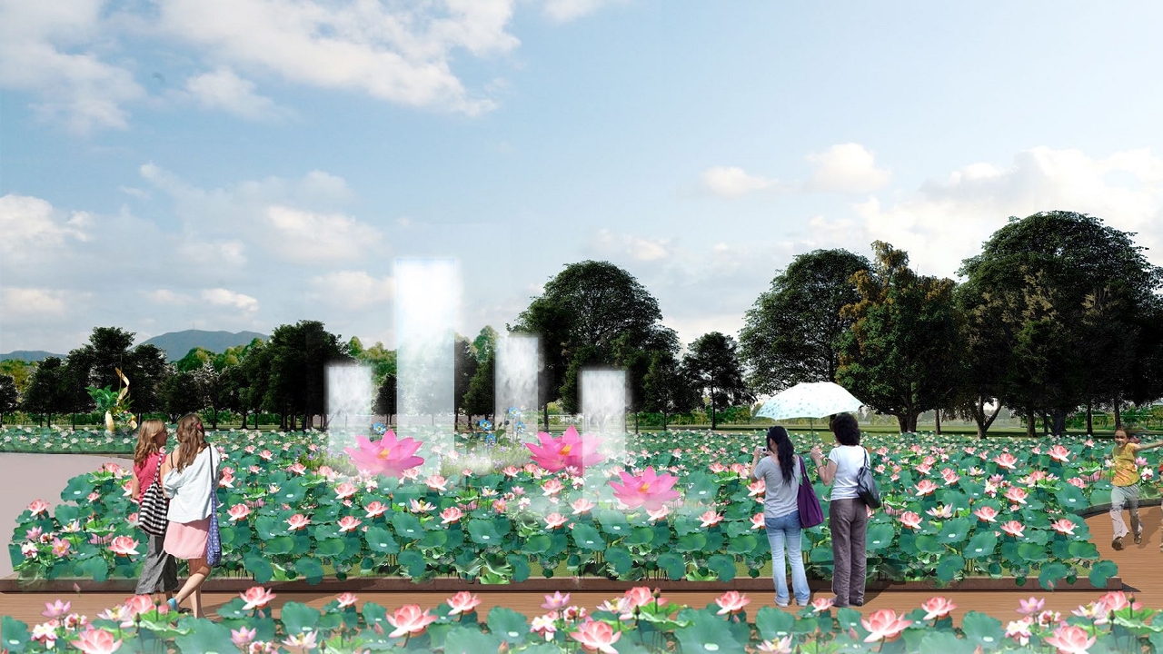 今届荷花节主题花为淡堇紫色的“小台红”,花期长,着花密度繁多,花型是花瓣多达一百片的重台型碗莲。而荷花节花展主题为“荷雾迷离”,透过水雾渲染荷花美态,为本澳盛夏带来凉意。为配合设计主题,展场龙环葡韵共设置五个特色区域。第一展区“风姿绰约”:以竹为环保和艺术结合的媒介,营造清雅舒适的氛围,提升荷花的观赏意境,并提高大众的环保意识;第二展区“出水芙蓉”:模拟漫步赏荷的小溪,展现一朵朵清新脱俗的盛放荷花;第三展区“亭亭玉立”:在中心位置设置活动舞台,形成向心力,吸引观众驻足赏花及休憩;第四展区“藕丝织布”:以拉丝模拟细嫩的藕丝,通过现代艺术的表现手法呈现荷藕柔细的一面,并成为具特色的中心景观;第五展区“流光荷影”:运用透明亚克力和喷雾的组合,描绘出流光瀑布的景象。而整个展场昼夜均安排喷雾效果,丰富大众对荷花的观赏体验。