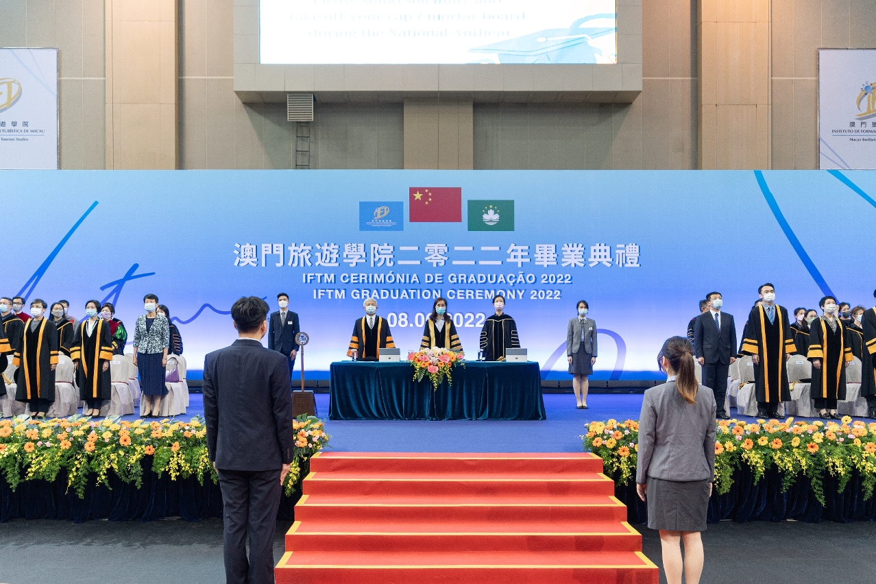 毕业典礼由澳门特别行政区行政长官代表 - 社会文化司司长欧阳瑜,在学院董事会主席陈泽武、院长黄竹君陪同下主持。中联办、外交公署、校董会成员、立法会议员、政府部门及学校代表、奖助学金机构、旅游及服务业界代表等聚首一堂,分享毕业同学的喜悦,见证庄严而美好的时刻。