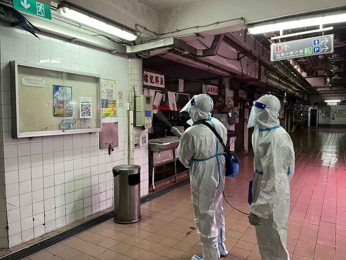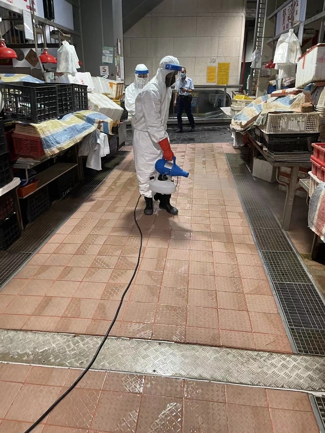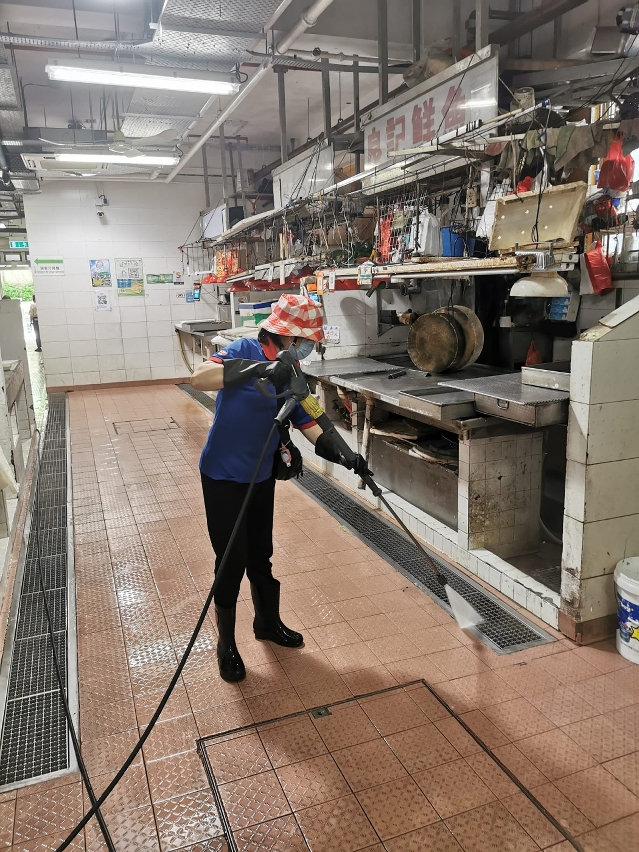 自疫情发生以来,市政署持续加强对各市政街市的清洁消毒,除加密以稀释漂白水清抹公共设施的频次,每晚收市后更会进行彻底的清洗及消毒,以高压水枪清洗并更增加了以喷雾机强化消毒,保障设施及环境卫生,强化抗疫措施,减低疫病传播风险。