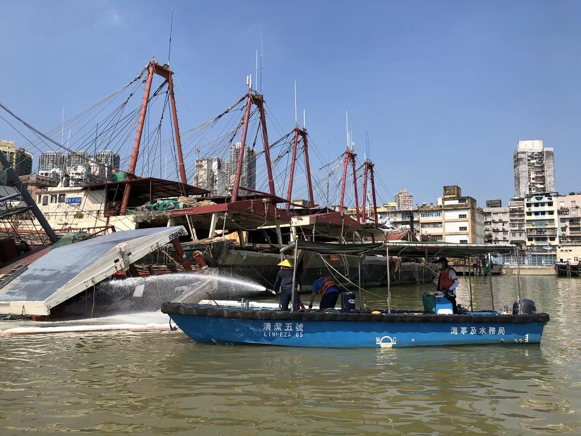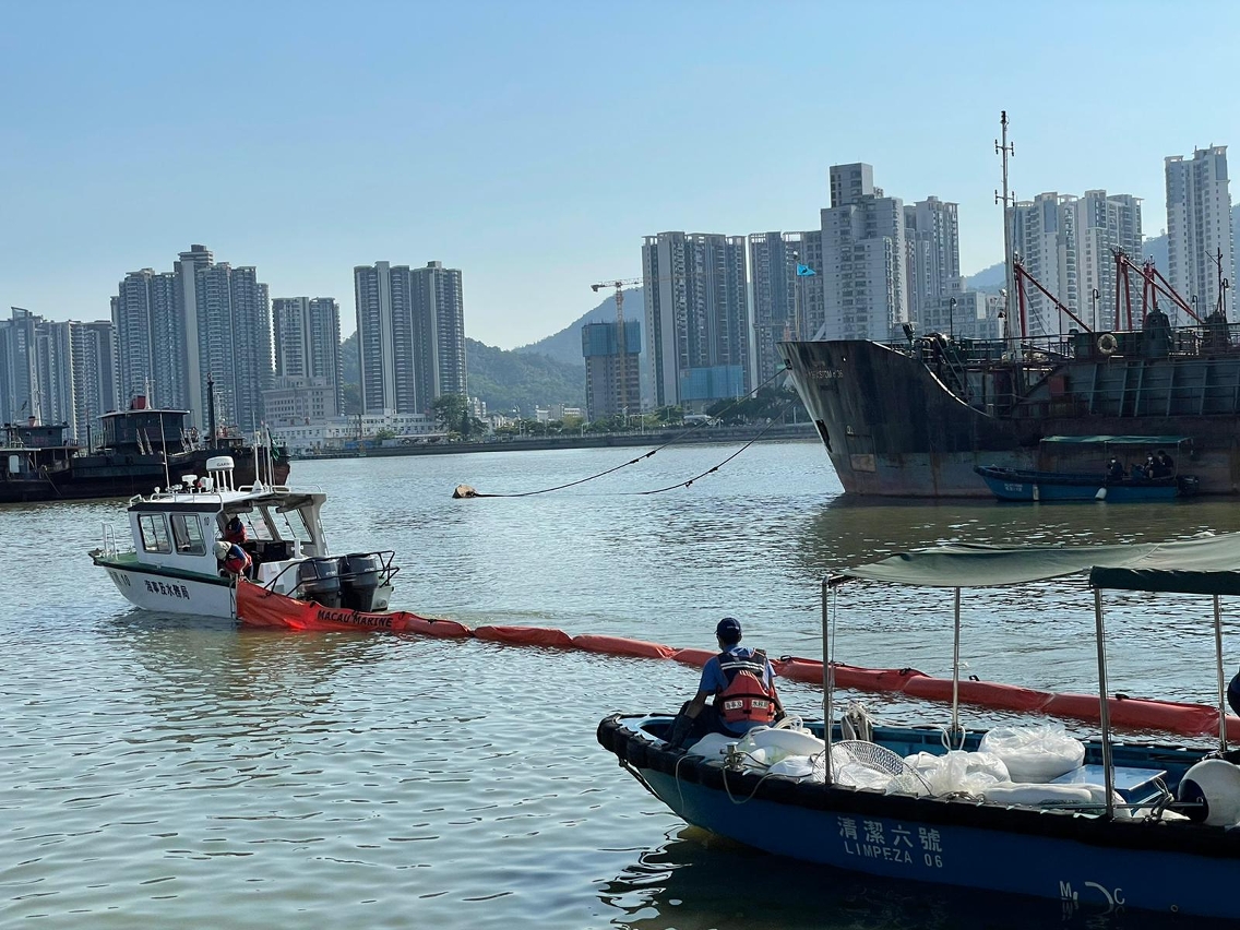 肇事的渔船锚泊于内港28号码头对开的锚地,渔船入水后严重倾侧,局方船队其后发现有油污从渔船渗出,随即派船带备防油污设备,及时在渔船的周边设置了吸油棉条,在油污扩散前控制了情况,随后也因应情况在渔船周边喷洒化油剂和投放吸油毡。由于预期晚上仍会持续有油污渗出,局方已在渔船周边加设围油栏,以减少油污扩散的可能。
