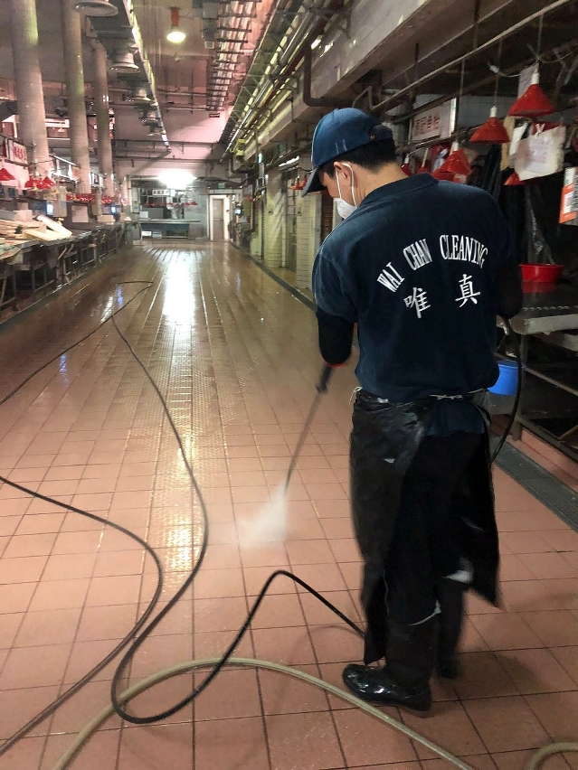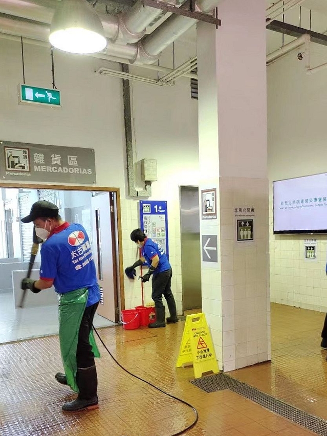 为保障街市内设施的卫生情况,市政署加派人员定时以稀释漂白水清抹门把、扶手电梯、升降机按钮等设施,并在每天中午休市时段,清洗公共廊道,每晚收市后,以高压水枪清洗、喷雾机消毒等进行彻底的深层清洁消毒。