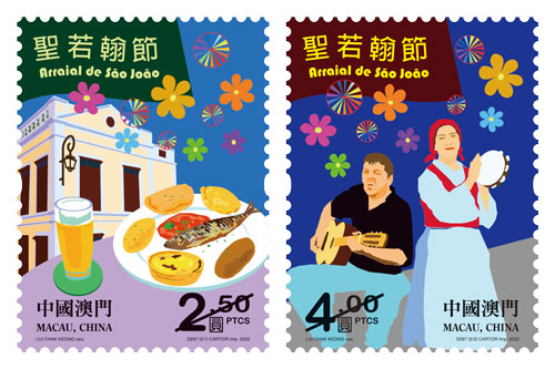 是次发行包括一套两枚邮票及一枚小型张,邮票色彩明亮丰富,展示“圣若翰节”在疯堂斜巷举行的嘉年华活动,以彩旗、美食、葡式建筑、音乐表演来呈现葡人与土生葡人的文化。而小型张以市政署内的“圣若翰像”为邮票主图,配上1622年的澳门城市图像及位于得胜花园的“战胜荷兰人纪念碑”,以表达该节日在澳门的起源。