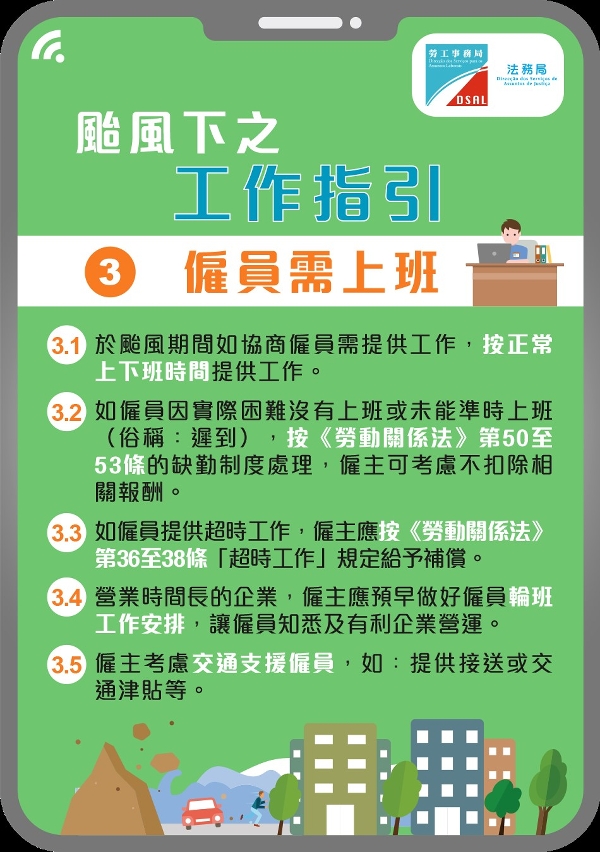 《台风及突发公共事件下之工作指引》( https://www.dsal.gov.mo/download/pdf/function_classification/labor_problem/download/blnotice_weather_c.pdf)