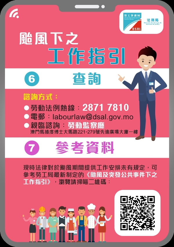 台风下的工作指引图文包( https://www.dsal.gov.mo/zh_tw/standard/download_graphic_laborproblem_typhoon1.html )