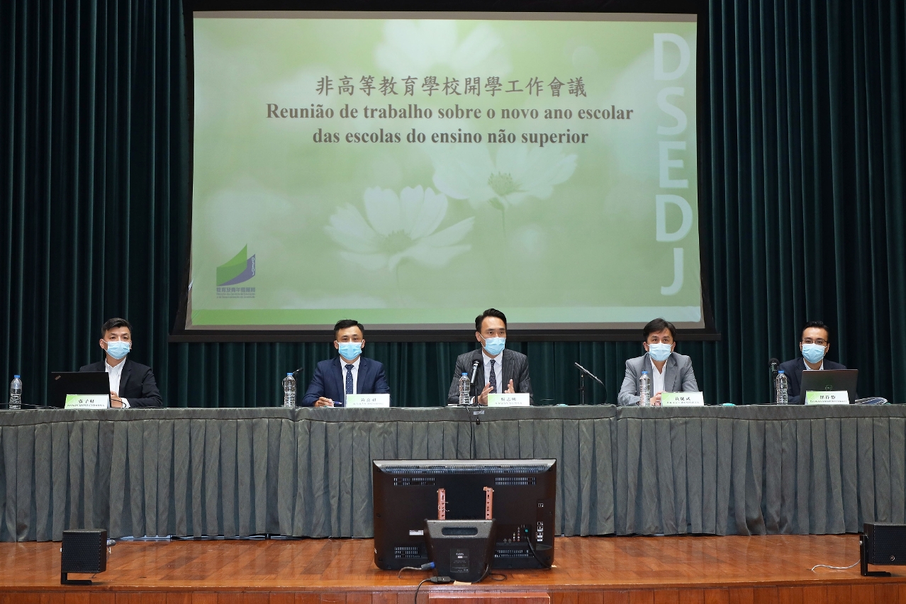 为更好地准备新学年工作,非高等教育厅厅长张子轩简介开学前师生核酸检测、跨境学生和教职员的资料收集、学校为未满3周岁学生执行的防疫措施等,并呼吁尚未接种疫苗的教职员和已满3周岁学生接种新冠疫苗。黄健武代副局长介绍“开学第一课”教学内容,建议学校人员在开学首周应加强教导学生识法守法的教育工作。邓伟强学校督导协调员介绍《学校运作指南》内须关注事项,包括学生功课和评核、书包减重、学校财务管理及校董会章程制定,以及有关教育基金“双层监督”机制。黄嘉祺副局长简介新学年将利用澳门科学馆场地及设施等资源,加强学生科普教育和教师培训工作。