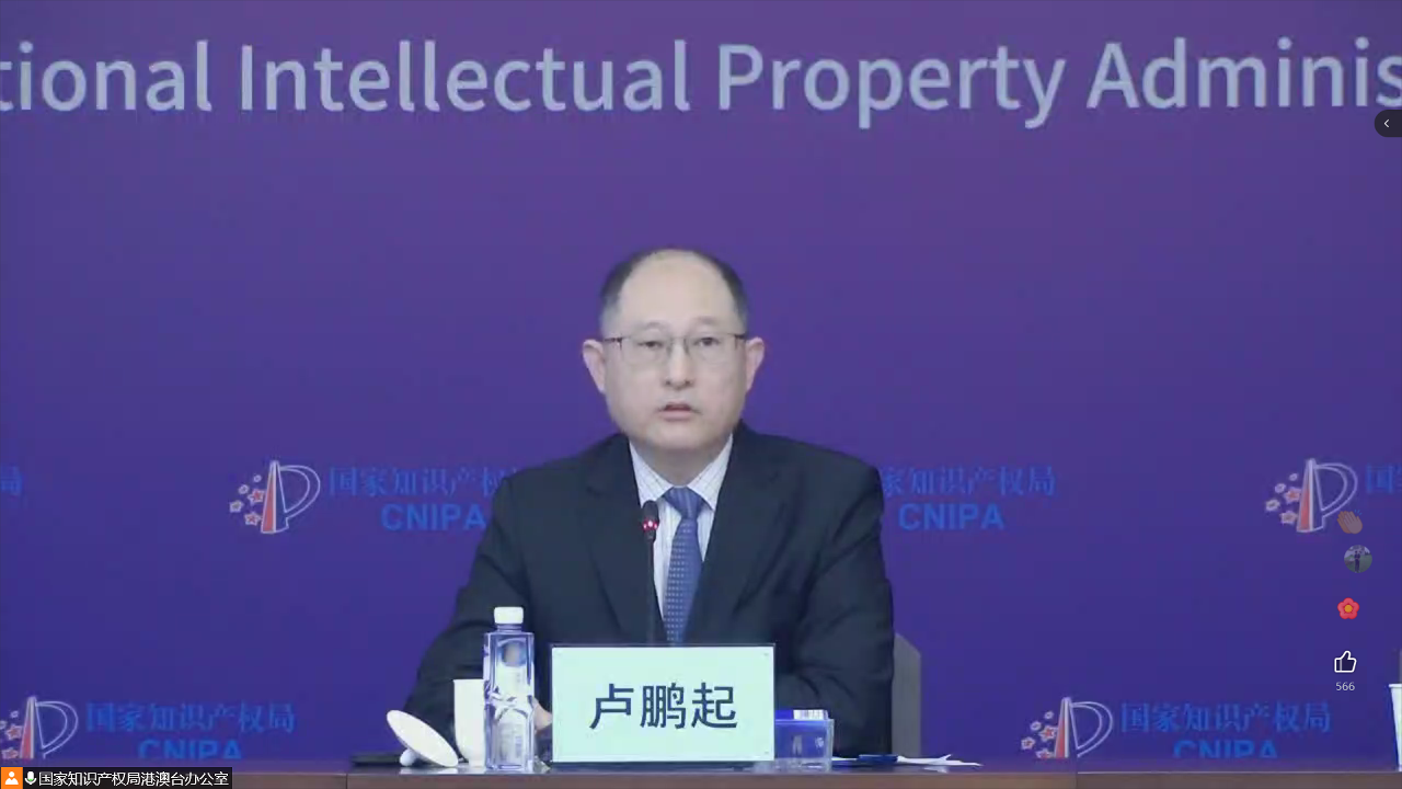 由国家知识产权局港澳台办公室、香港特区政府知识产权署及澳门特区政府经济及科技发展局联合举办的“2022年内地与香港特区、澳门特区知识产权研讨会”今(30)日下午以线上方式举行。国家知识产权局卢鹏起副局长、香港特区政府知识产权署曾志深署理署长、澳门特区政府经济及科技发展局陈子慧代局长致开幕辞。