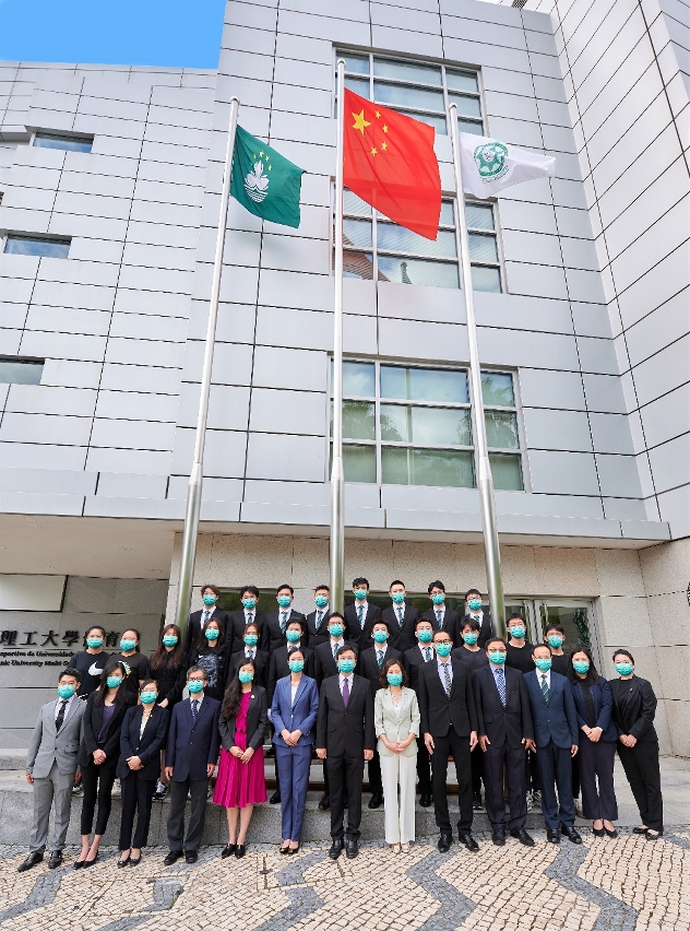 澳门理工大学于今天(9月5日)早上八时举行新学年升旗仪式,弘扬爱国爱澳精神,提升大学生对祖国的认同感和归属感,向祖国及澳门特区送上祝福,向学子送上新学年祝愿,场面庄严隆重。澳门理工大学校长严肇基、副校长李雁莲、秘书长李惠芳,以及大学各学院院长及副院长、各部门主管及师生一同参与。