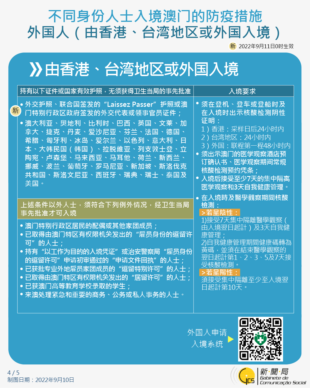 【图文包】最新入境澳门的防疫措施 (2022/9/10)