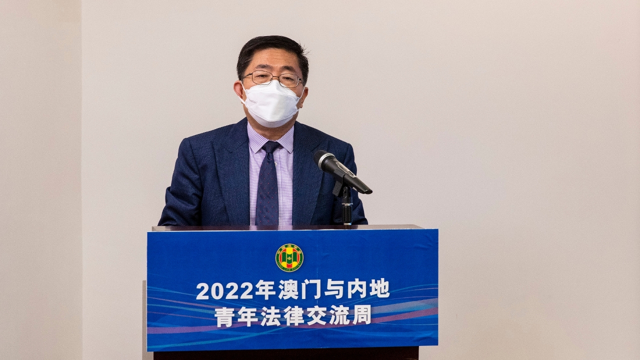 开班式上,刘德学局长致辞时表示,“一国两制”的全面贯彻,为澳门创造了广阔的发展空间;横琴粤澳深度合作区的成立运作,更为澳门经济适度多元发展带来了新机遇。致辞中他引用了习近平主席所说的“未来属于青年,希望寄予青年”勉励青年,并指出澳门青年是澳门未来持续繁荣发展的栋梁和希望,是大湾区和深合区建设的重要力量。在当前国家步入新发展阶段、澳门经济亟待转型、深合区建设蓝图绘就的时代背景下,作为澳门青年人,当以社会发展为己任,志存高远、勇于担当,将自身的发展与国家的命运相结合;而作为新一代的澳门法律人,更应脚踏实地、善作敢为,尽己所能,为澳门和大湾区、深合区的法制建设建言献策。