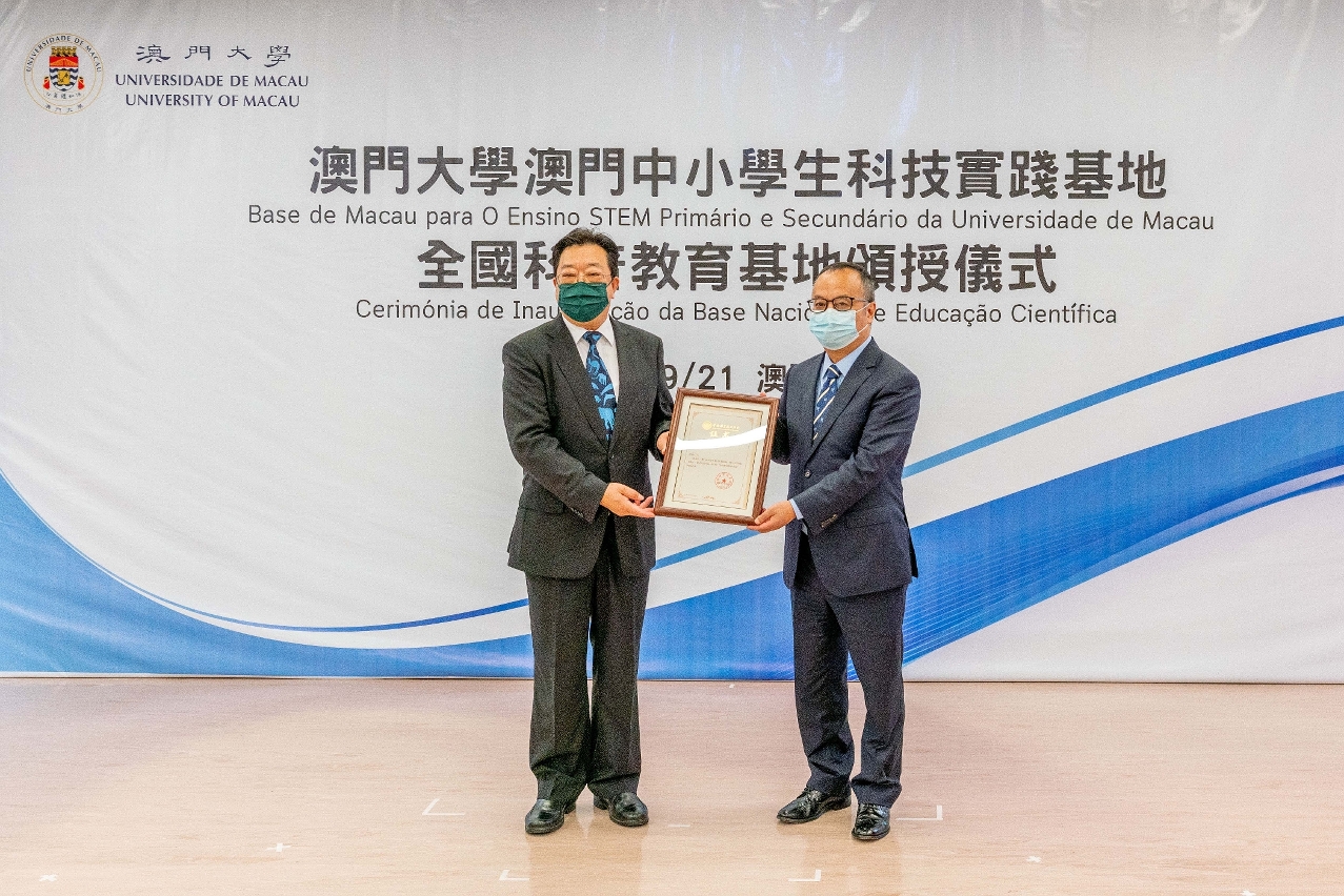 澳门大学“全国科普教育基地”今(21)日举行证书颁授暨揭牌仪式,标志着国家对澳大科普教育工作的肯定。澳大将发挥中葡科普合作的国际化优势,强化与内地科普平台的对接,提供更多优质的科普服务,培育科创人才。