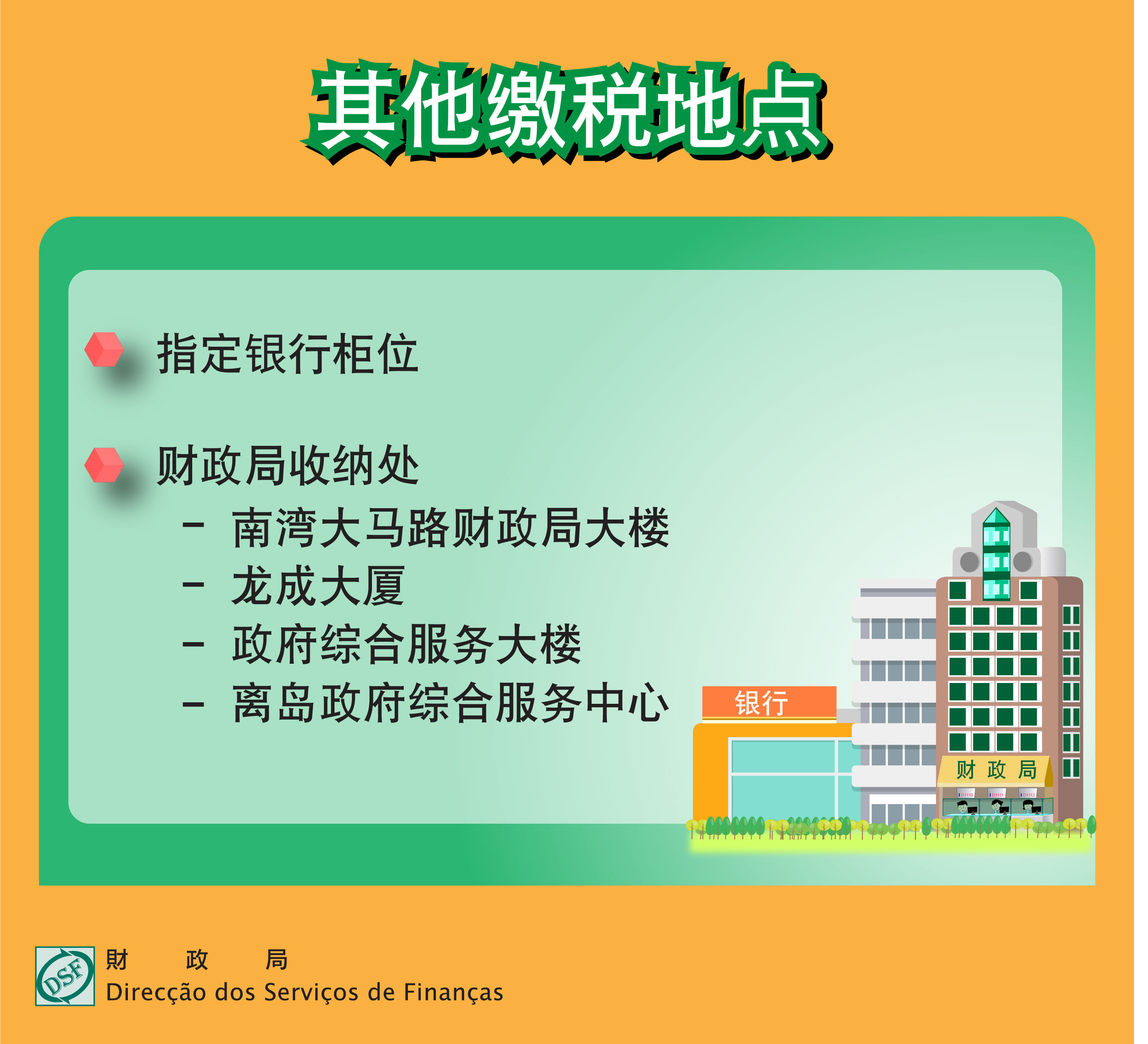 | 财政局大楼及龙成大厦 | 星期一至星期四(9:00-18:00) 星期五(9:00-17:45) |