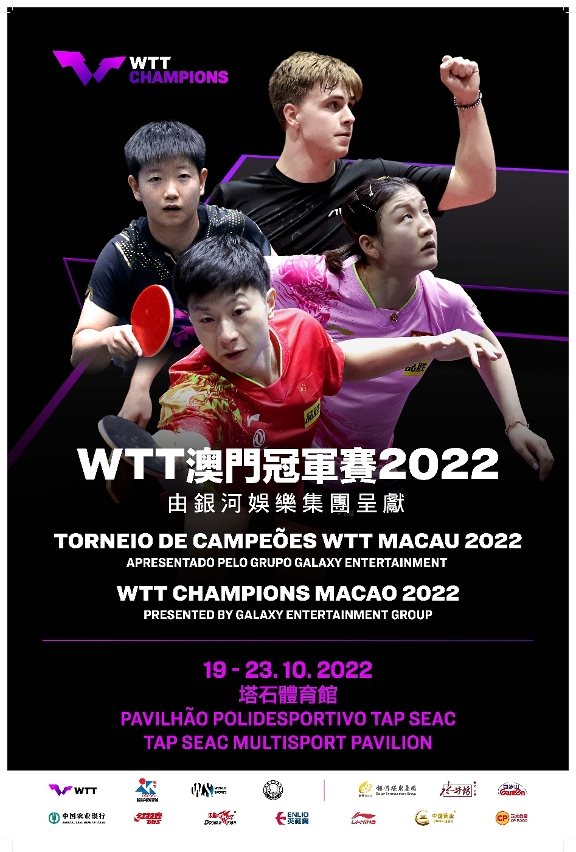 由体育局及世界乒乓球职业大联盟(WTT)主办、澳门乒乓总会协办的「WTT 澳门冠军赛 2022 ─ 由银河娱乐集团呈献」将于2022年10月19日至23日在塔石体育馆举行。一众世界顶级乒乓球运动员将向市民和旅客展示精湛的球技,势必上演连场激战。