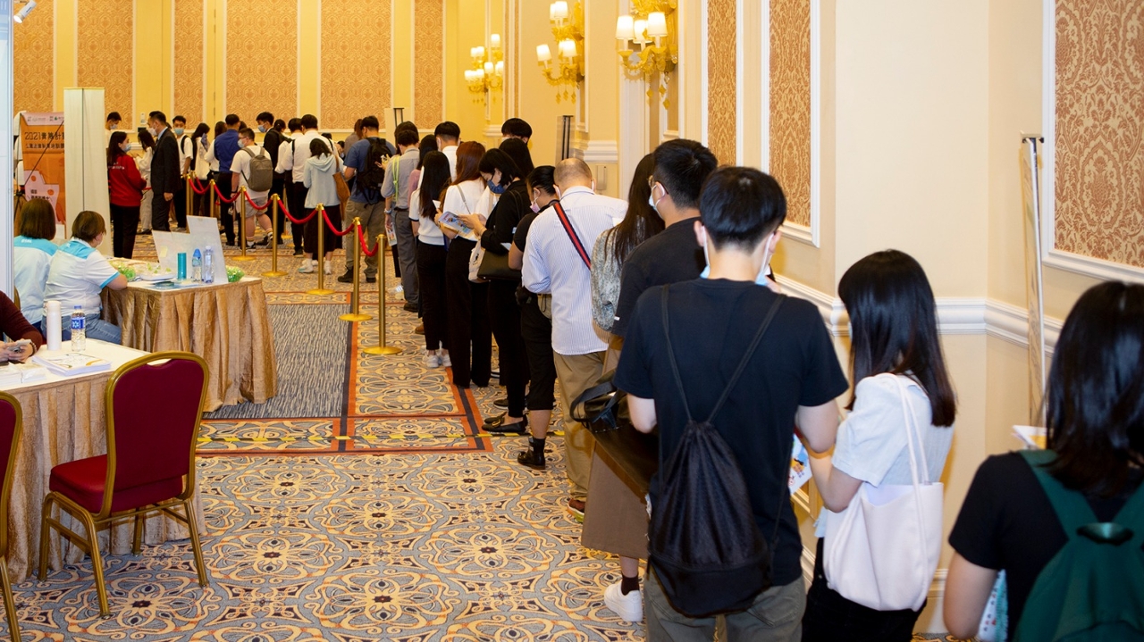 由劳工事务局、澳门中华新青年协会及澳门中华学生联合总会合办的“青年就业博览会2022”,今(8)日早上11时在威尼斯人米兰会议厅揭幕,参与活动人数众多,首日吸引逾千人次入场,企业即场面试约600人次。